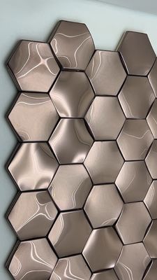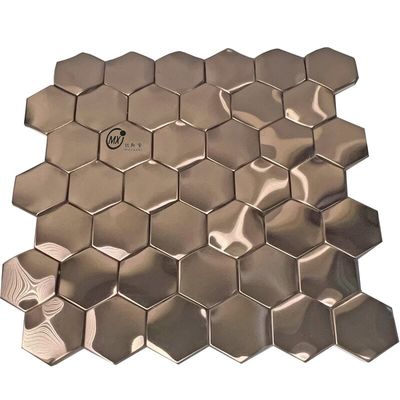 Hexagon Shape Metal Rose Gold 304 Brushed Stainless Steel Mosaic Tiles For Hotel Interior