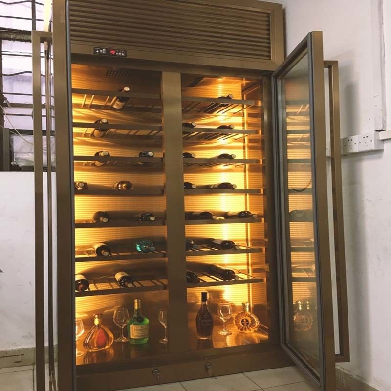 Luxury High-End Design Villa Private Customized Rose Gold Stainless Steel Wine Cabinet Display Rack