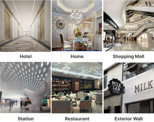 Be extensively applied to architectural & interior decoration, such as elevator decoration, luxurious doors, wall decoration, advertisement nameplates, sanitary ware, ceiling decoration, corridor, hotel hall, shop facade, etc.