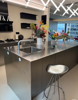 The sleek, modern finish complements any kitchen style, from contemporary to industrial. Its elegant look adds a touch of sophistication while being incredibly functional.